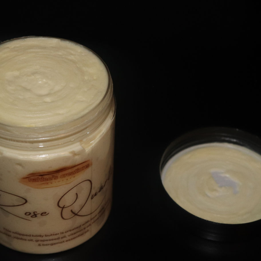 Our luxurious Rose Quartz Whipped Body Butter is inspired by the gentle and healing properties of the rose quartz crystal. Made with love and natural ingredients, this body butter is designed to nourish and hydrate your skin, leaving it feeling soft and smooth.